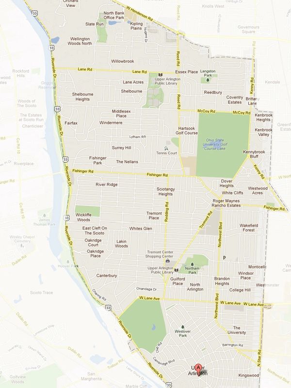 An affluent air with University perks. Located northwest of downtown, the 33,500+ inhabitants of Upper Arlington (U.A.) enjoy nearly ten square miles of their neighborhood. The proximity of U.S. Route 33 and U.S. Route 315 makes the Upper Arlington neighborhood prime real-estate. The Ohio State University and the University District afford U.A. an excellent location for professionals looking for quiet neighborhoods with access to all that a university setting has to offer.